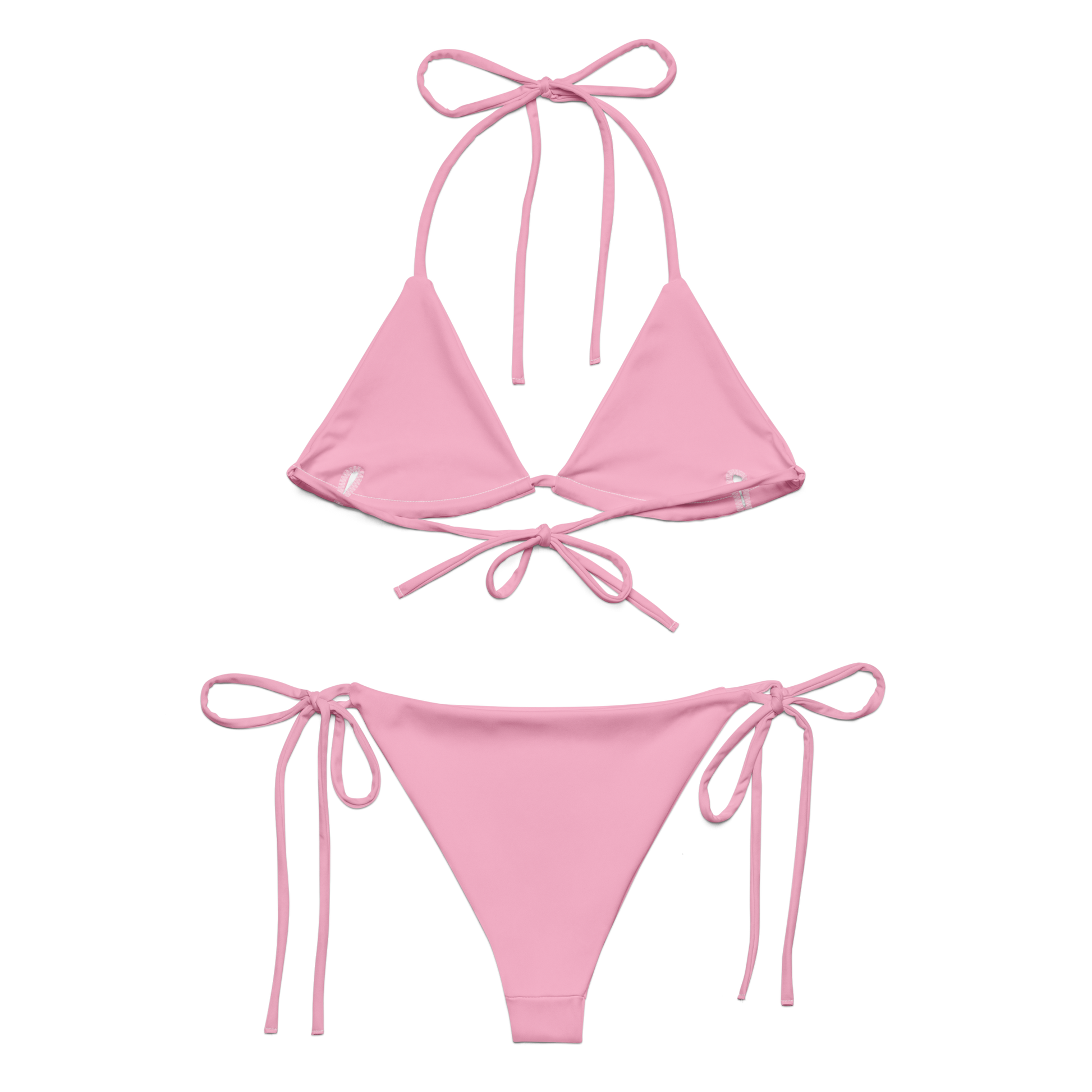 Disclaimer: To make your All-Over Print Recycled String Bikini last longer, thoroughly rinse it off after each use and get rid of any chlorine/salt residue.